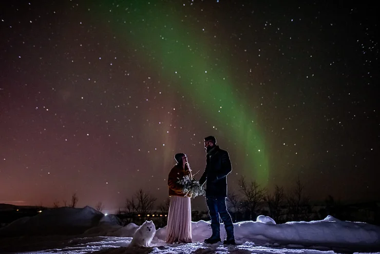 Eloping under the Northern Lights is about immersing yourselves in nature’s wonders. Embrace the adventure, whether it’s trekking to a remote location, staying in unique accommodations, or participating in local traditions.